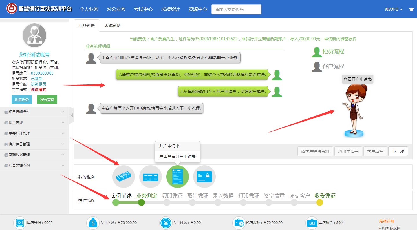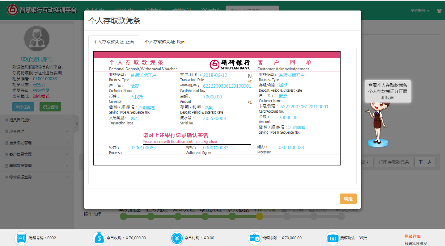 《智慧銀行互動(dòng)實(shí)訓(xùn)平臺(tái)》是以最新升級(jí)的商業(yè)銀行核心業(yè)務(wù)系統(tǒng)為藍(lán)本進(jìn)行的設(shè)計(jì)和開發(fā),突出了銀行核心業(yè)務(wù)系統(tǒng)的特點(diǎn)和最新的發(fā)展變化;同時(shí),為宜于教學(xué)實(shí)驗(yàn),該軟件讓學(xué)生以銀行柜員的角度,結(jié)合生動(dòng)的情景教學(xué)方式,突出了每種業(yè)務(wù)中處理的票據(jù)種類、票據(jù)審核的要點(diǎn)、票據(jù)流轉(zhuǎn)過程以及業(yè)務(wù)辦理的流程詳細(xì)等,更好地實(shí)現(xiàn)理論教學(xué)與實(shí)踐的結(jié)合;