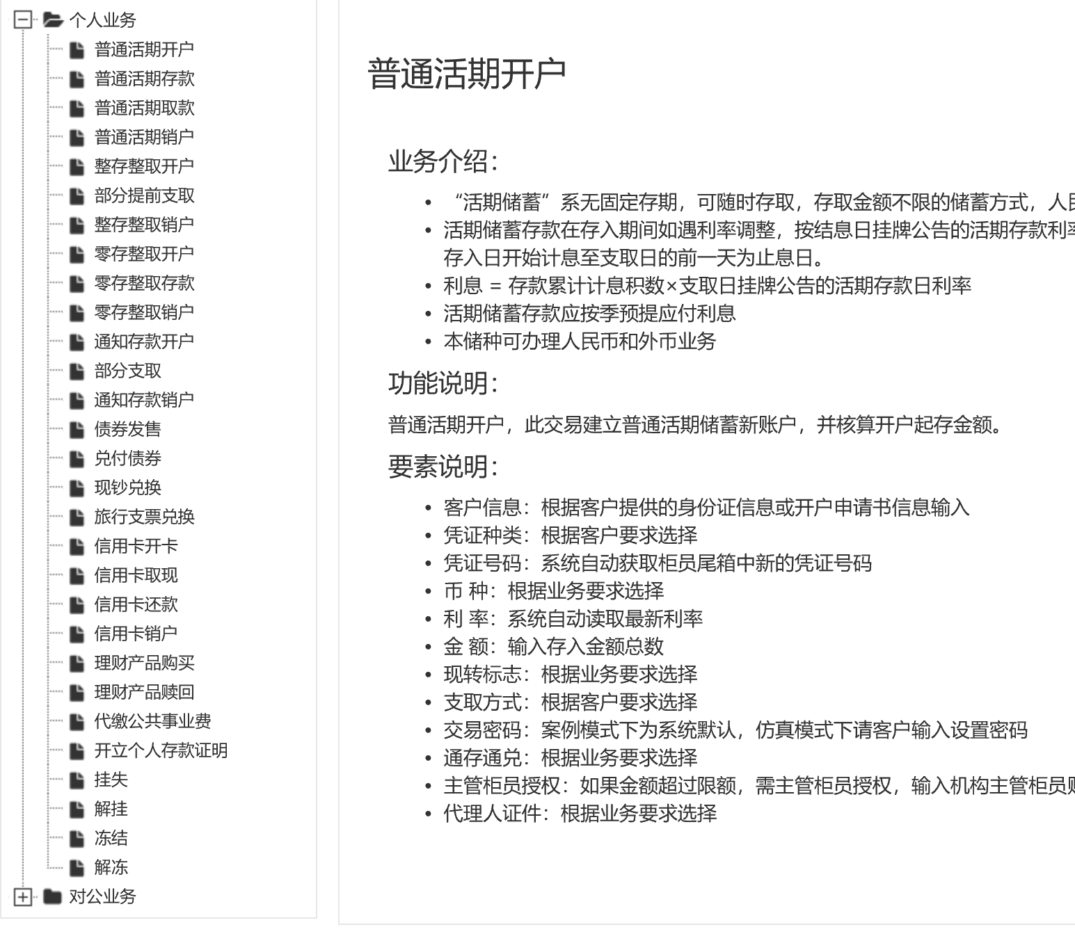 儲(chǔ)蓄存款業(yè)務(wù):活期儲(chǔ)蓄、定活兩便、整存整取、零存整取、存本取息、一本通等各類儲(chǔ)蓄開戶、存款、取款、部提和銷戶業(yè)務(wù)。